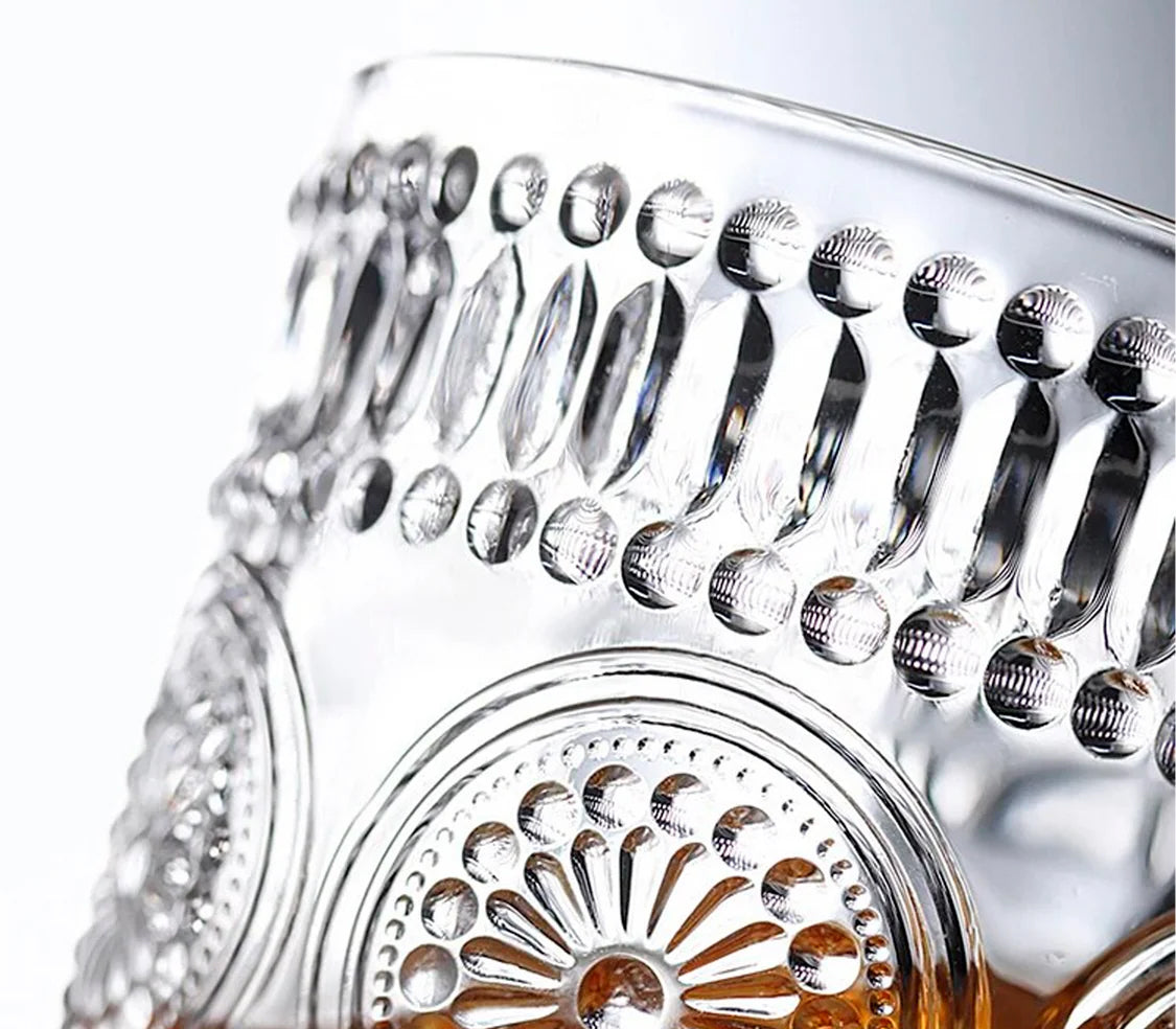 Su material de vidrio garantiza una experiencia de bebida superior, mientras que su diseño delicadamente tallado añade un toque de sofisticación a cualquier mesa.